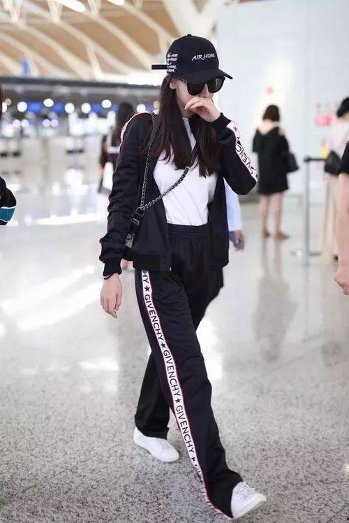 3. 休闲风:杨幂的黑色运动裤搭配白色T恤,简约大方,尽显女神风范。